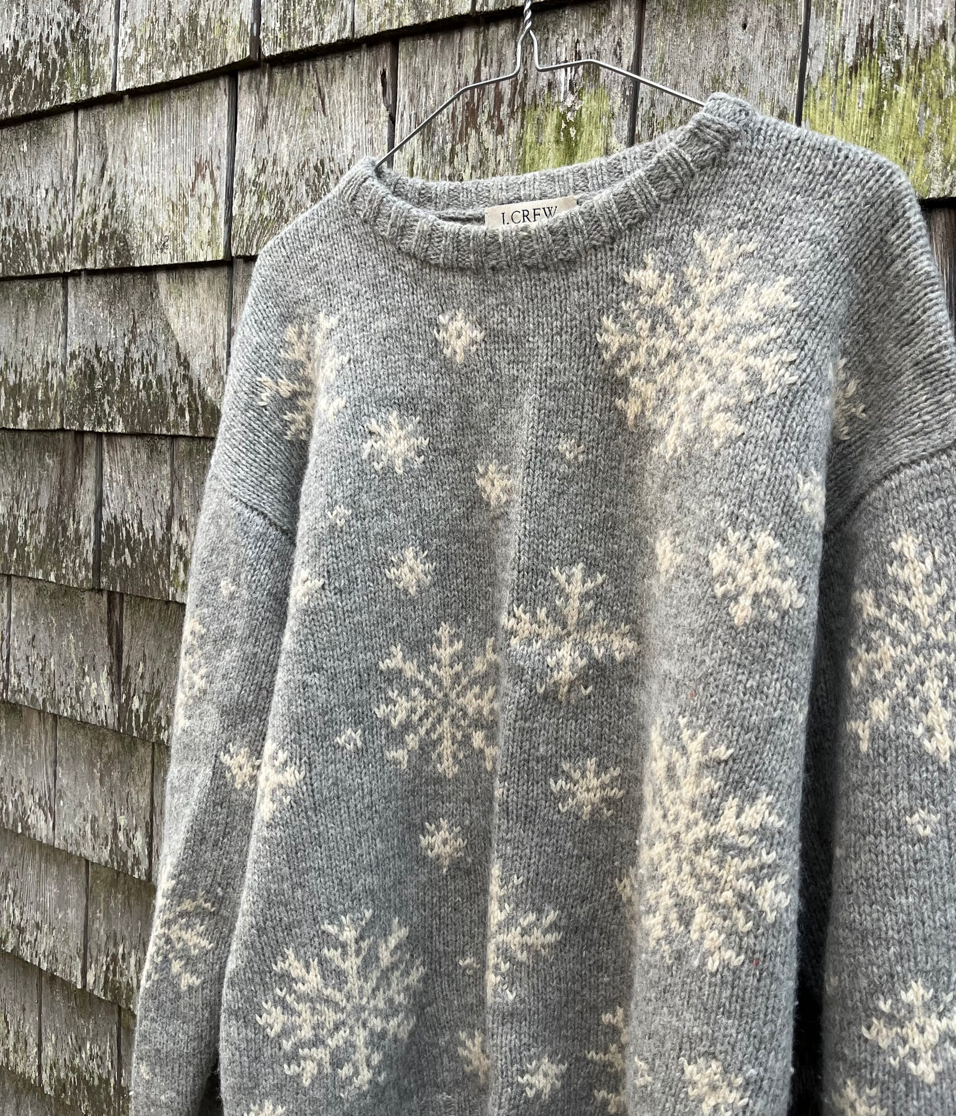 00s J.Crew Handknit Wool Snowflakes Sweater (XL)