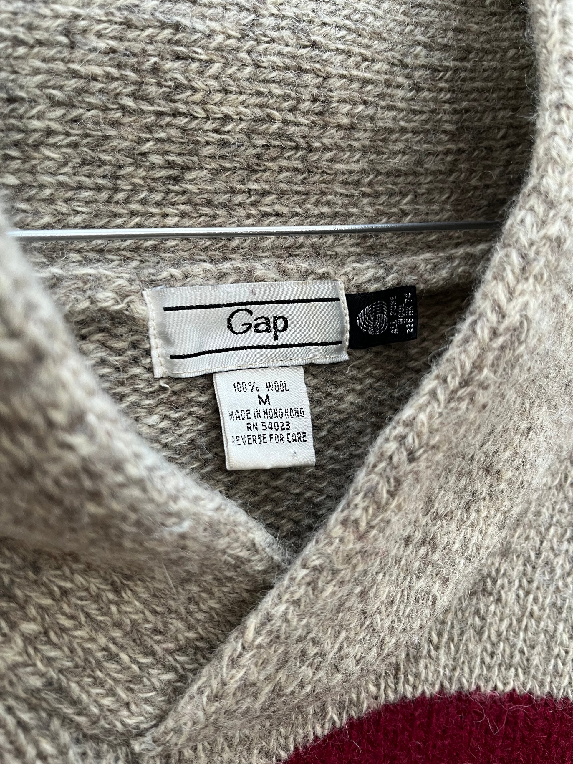 80s GAP cowl neck sweater. Marled beige knit with burgundy stripes. 100% wool.