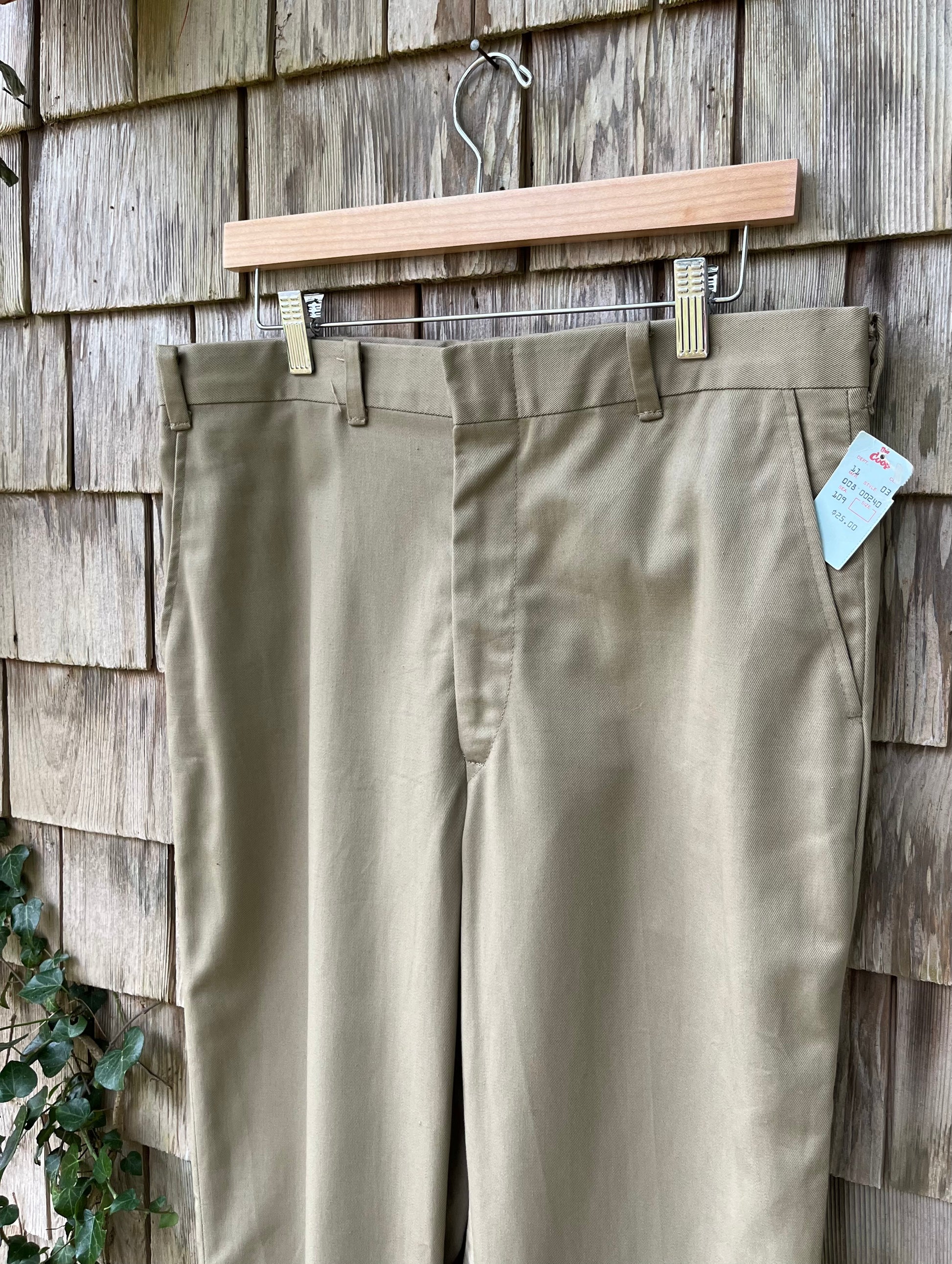 ~80s deadstock Harvard Coop Store chino trousers. Flat front. Zip fly. Classic khaki color. 100% cotton. Made in the USA.
