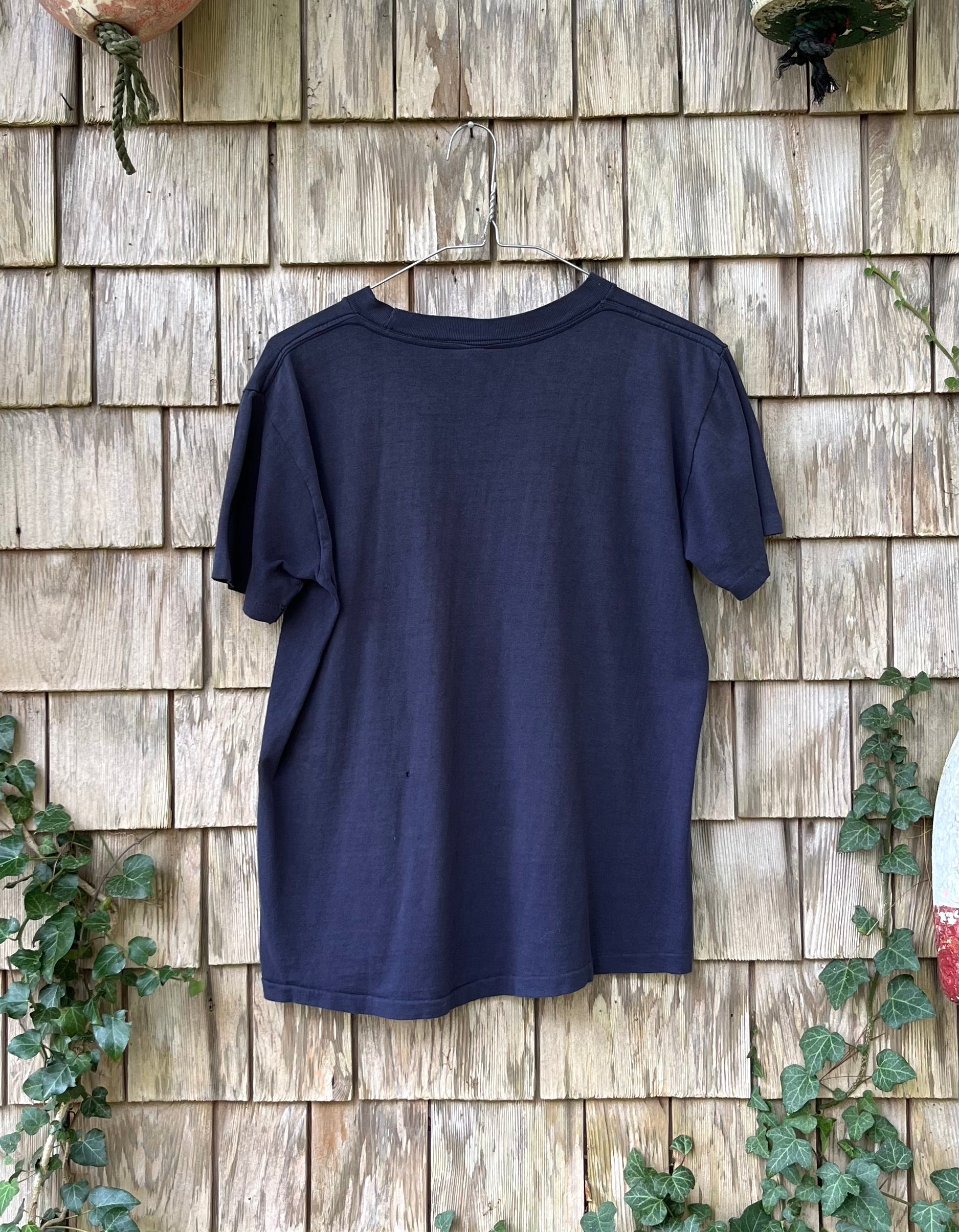80s O'Day Sailboats t-shirt. Navy blue with multicolor print on chest. Soft, nicely worn-in. 100% cotton, made in the USA, Champion shirt.
