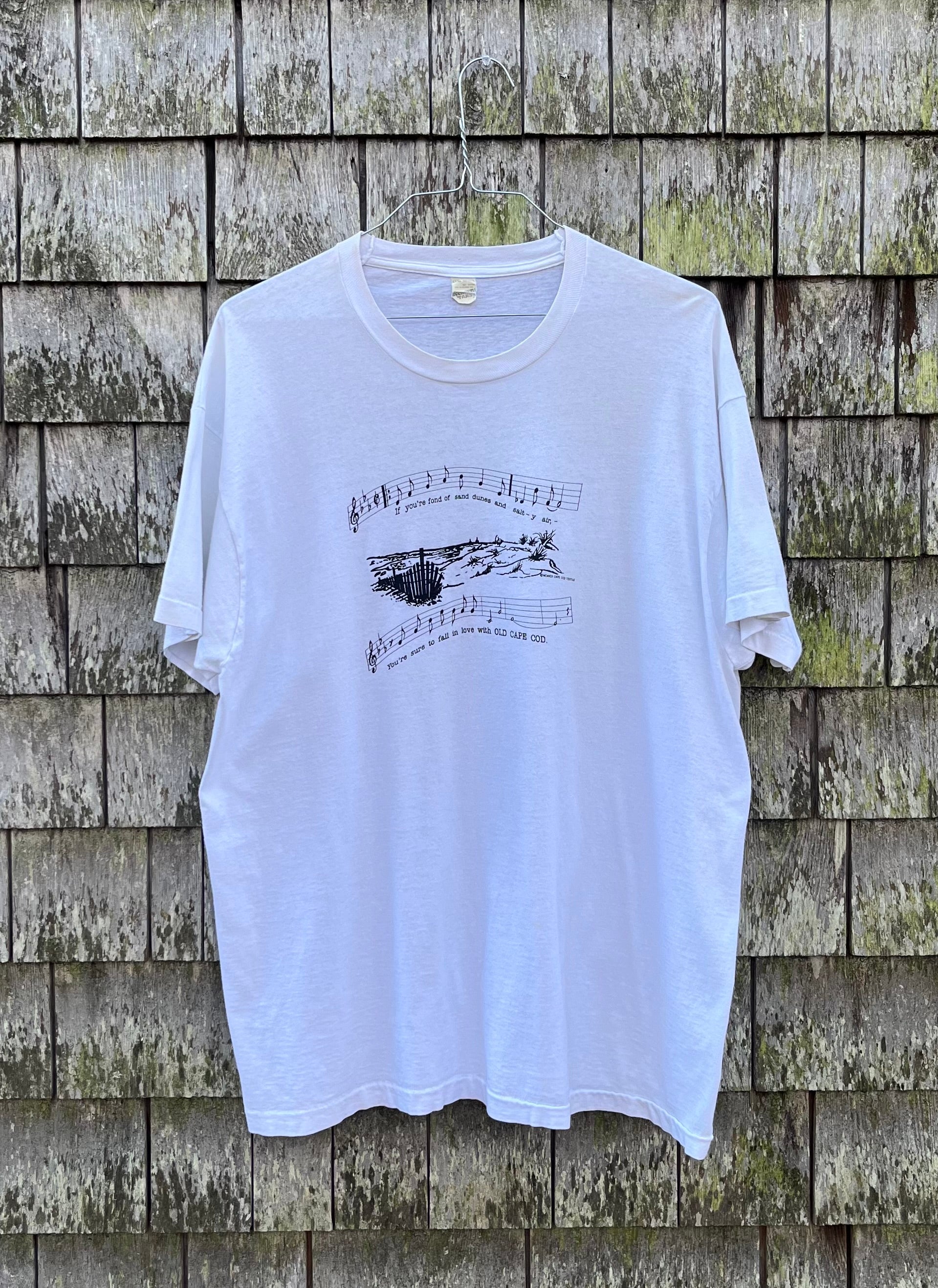 1980s 'Old Cape Cod' song lyrics t-shirt. White with black print on chest.