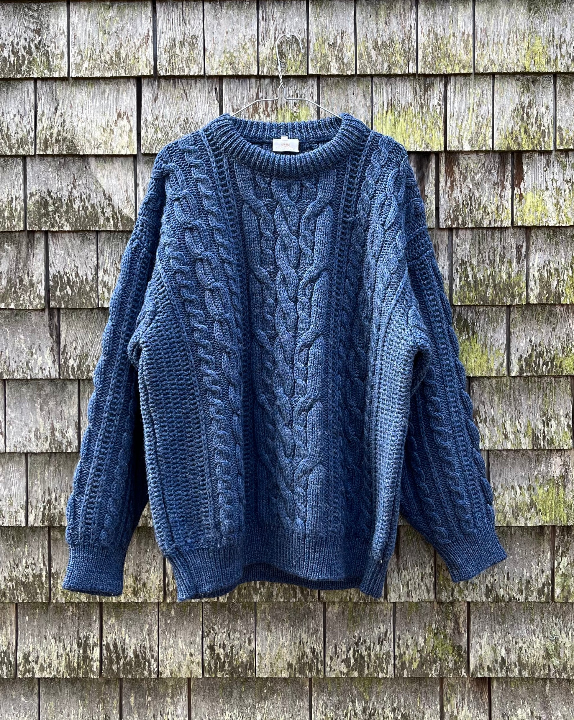 90s Bonners of Ireland Aran fisherman knit sweater. Nice deep indigo blue color. 100% wool. Made in Ireland.