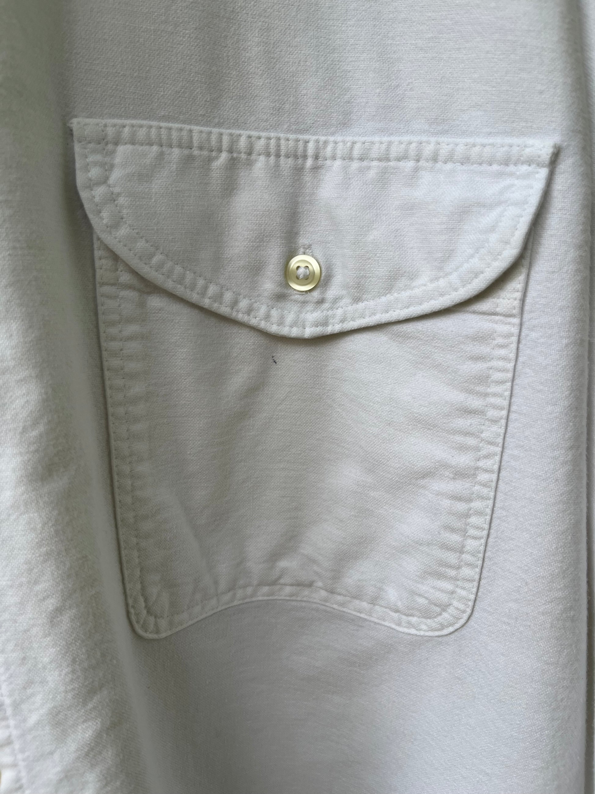 90s GAP button down cotton shirt. White. Double button/flap close pockets. 100%, plain weave, cotton.
