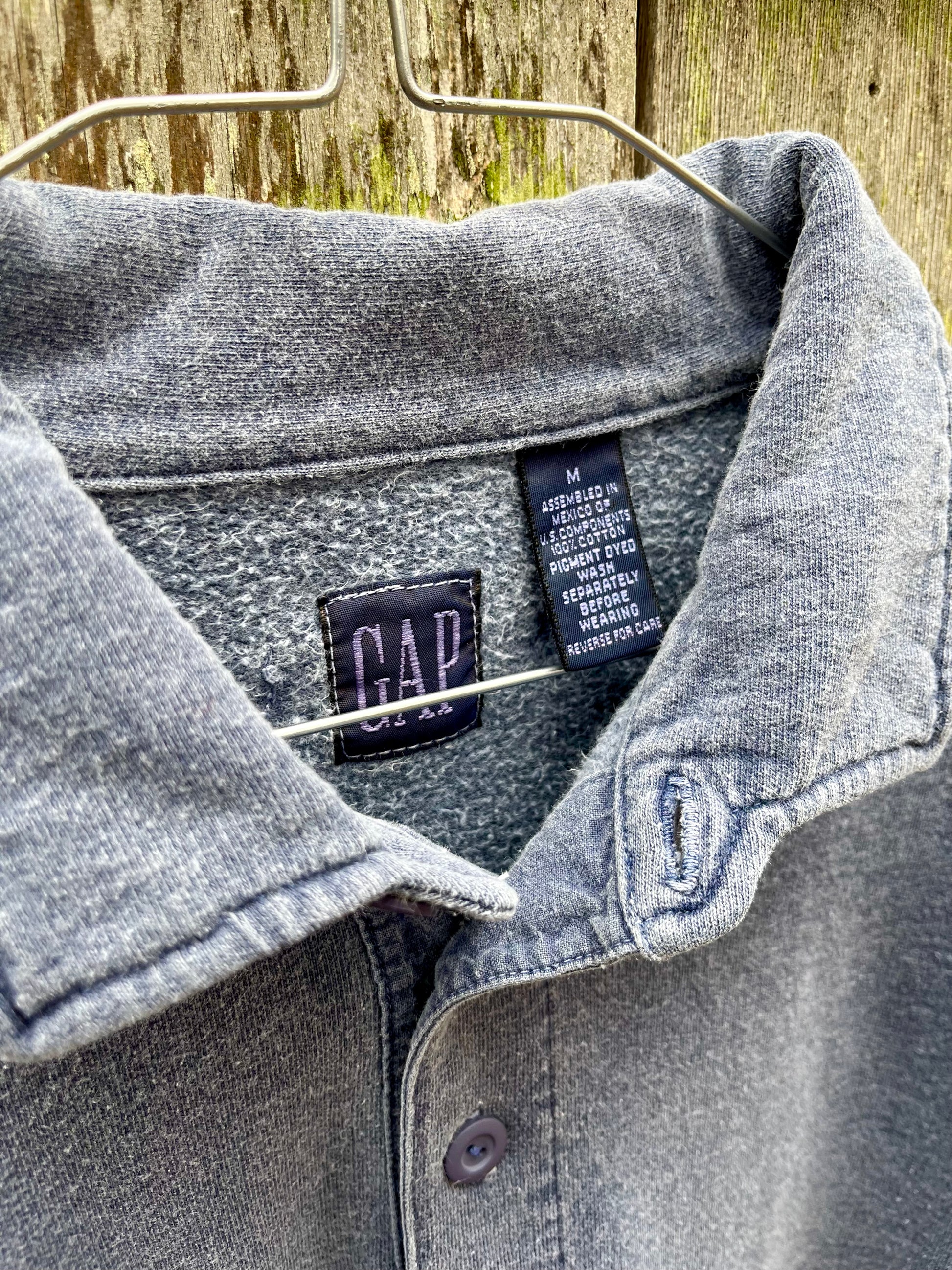 90s GAP over-dyed cotton pullover shirt. Blue/gray color. Three button placket collar. 100% cotton.