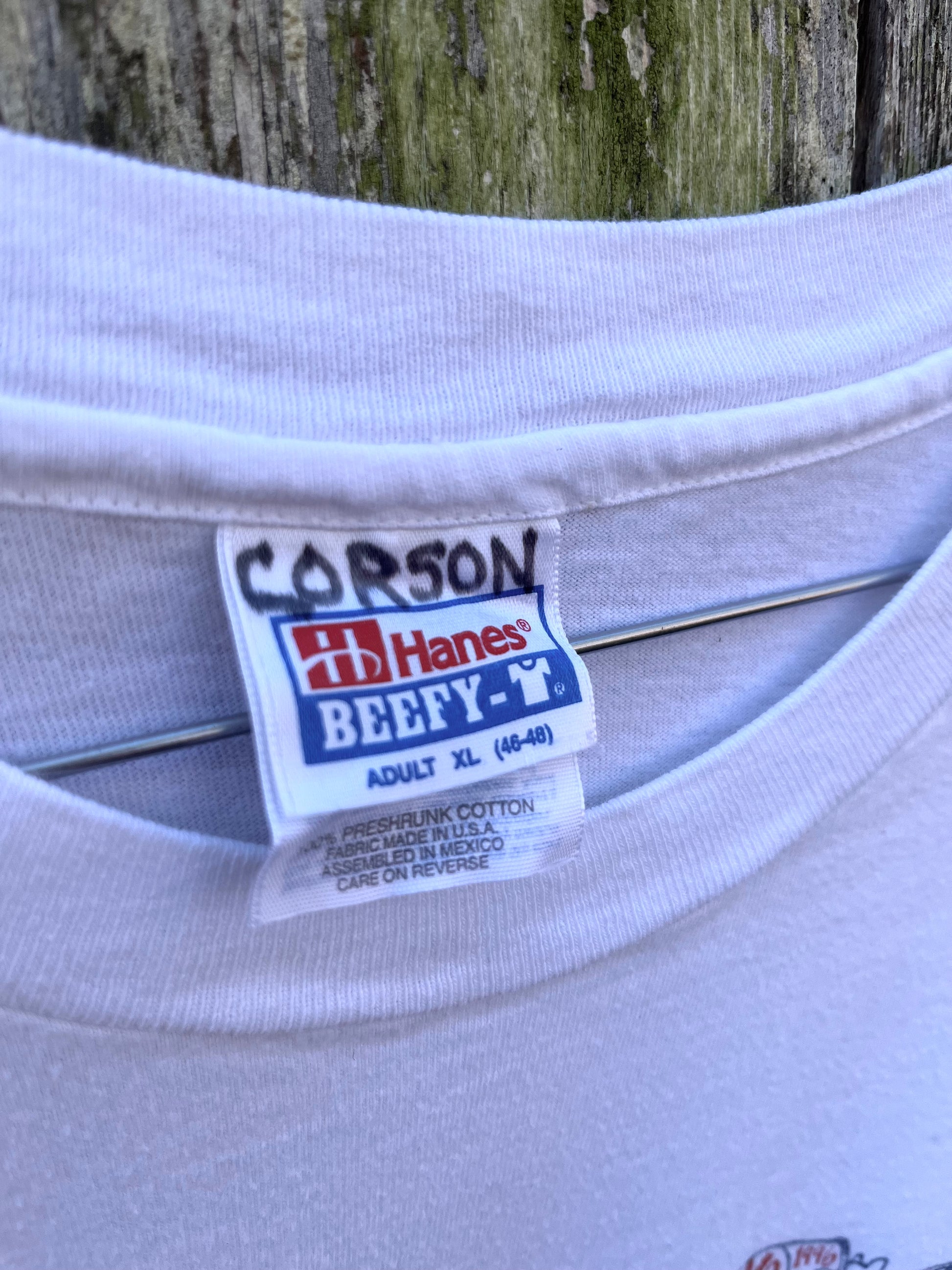 1996 Hyannis Yacht Club Invitational Race, Winnie the Pooh design long sleeve t-shirt. White with multicolor prints on chest and rear. 100% cotton, Hanes Beefy-T blank.