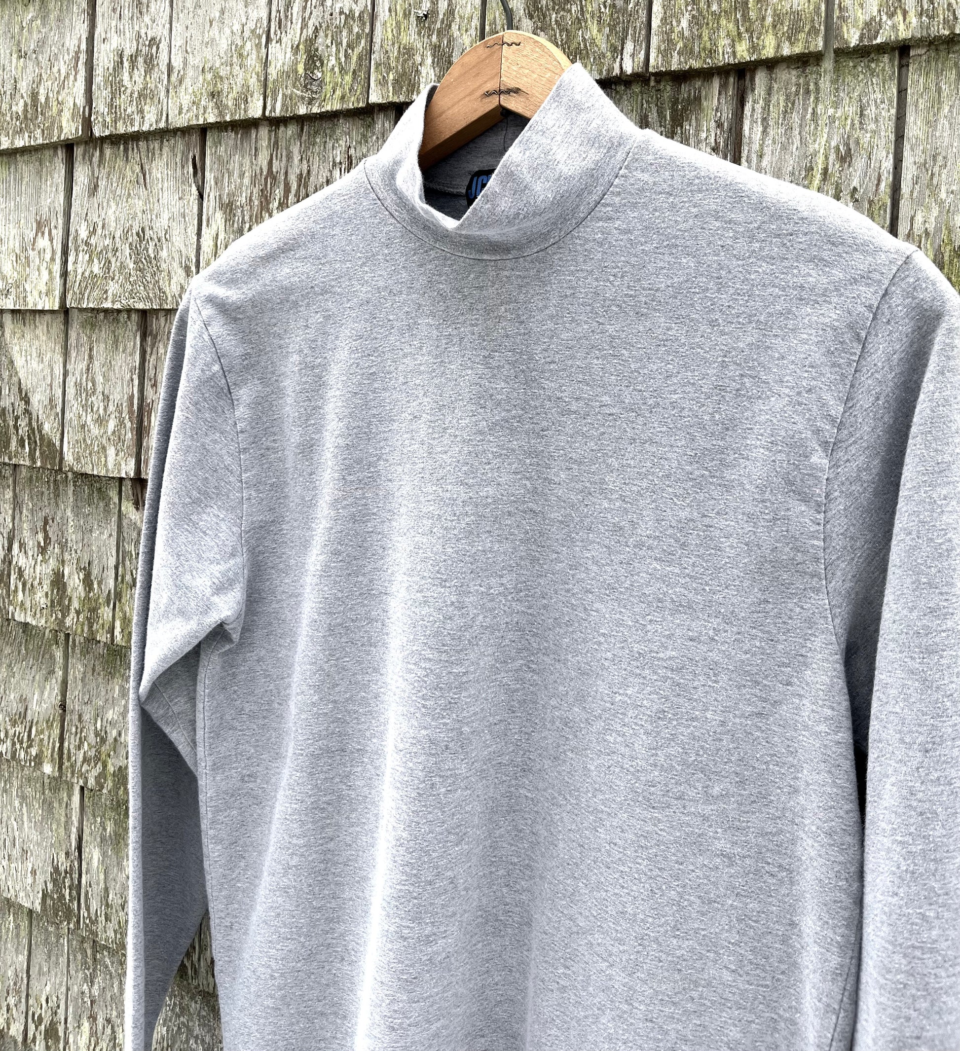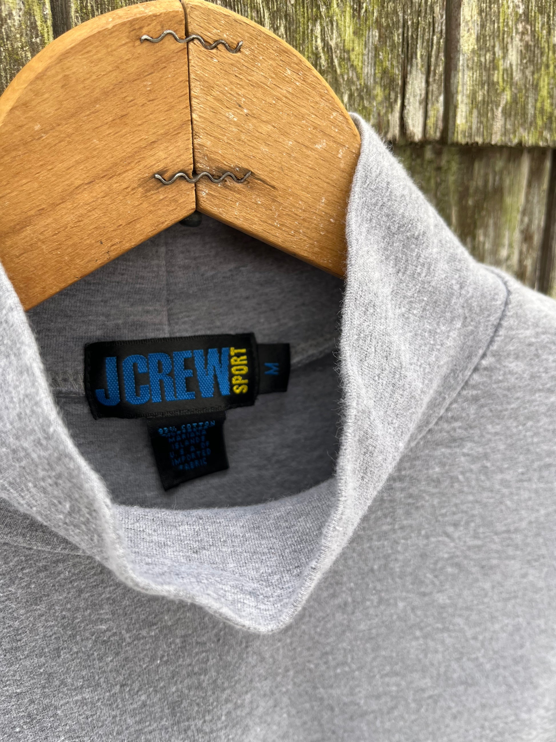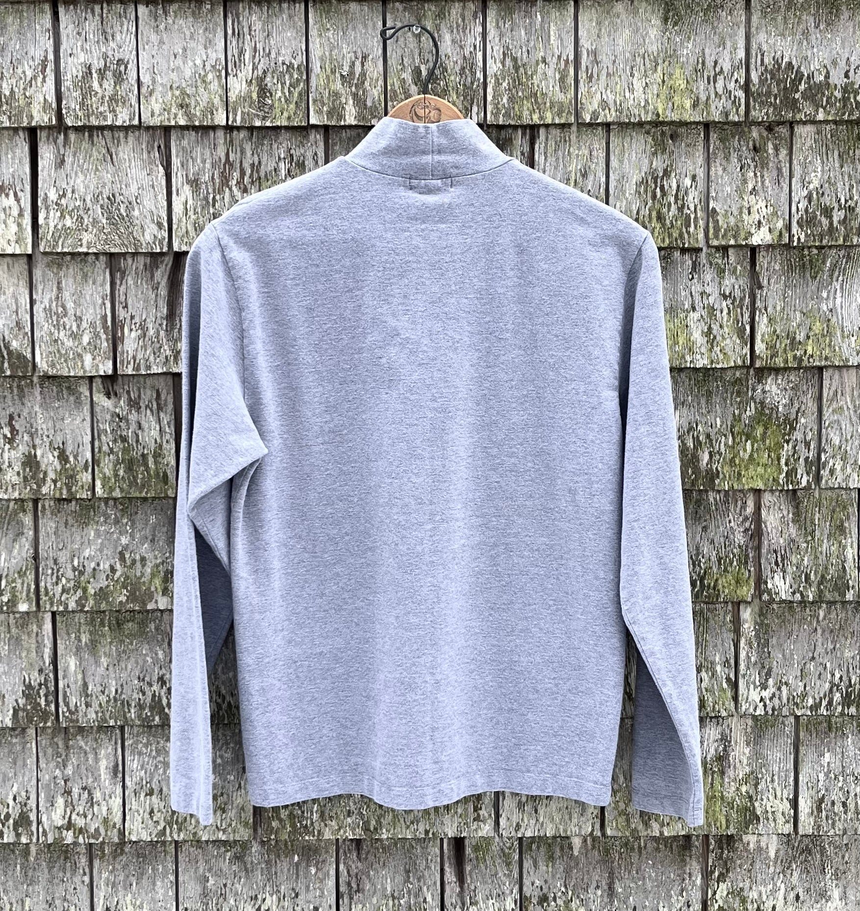 90s J.Crew Sport mock neck shirt. 100% cotton. Light heather gray. Straight/open cuffs. Made in the USA.