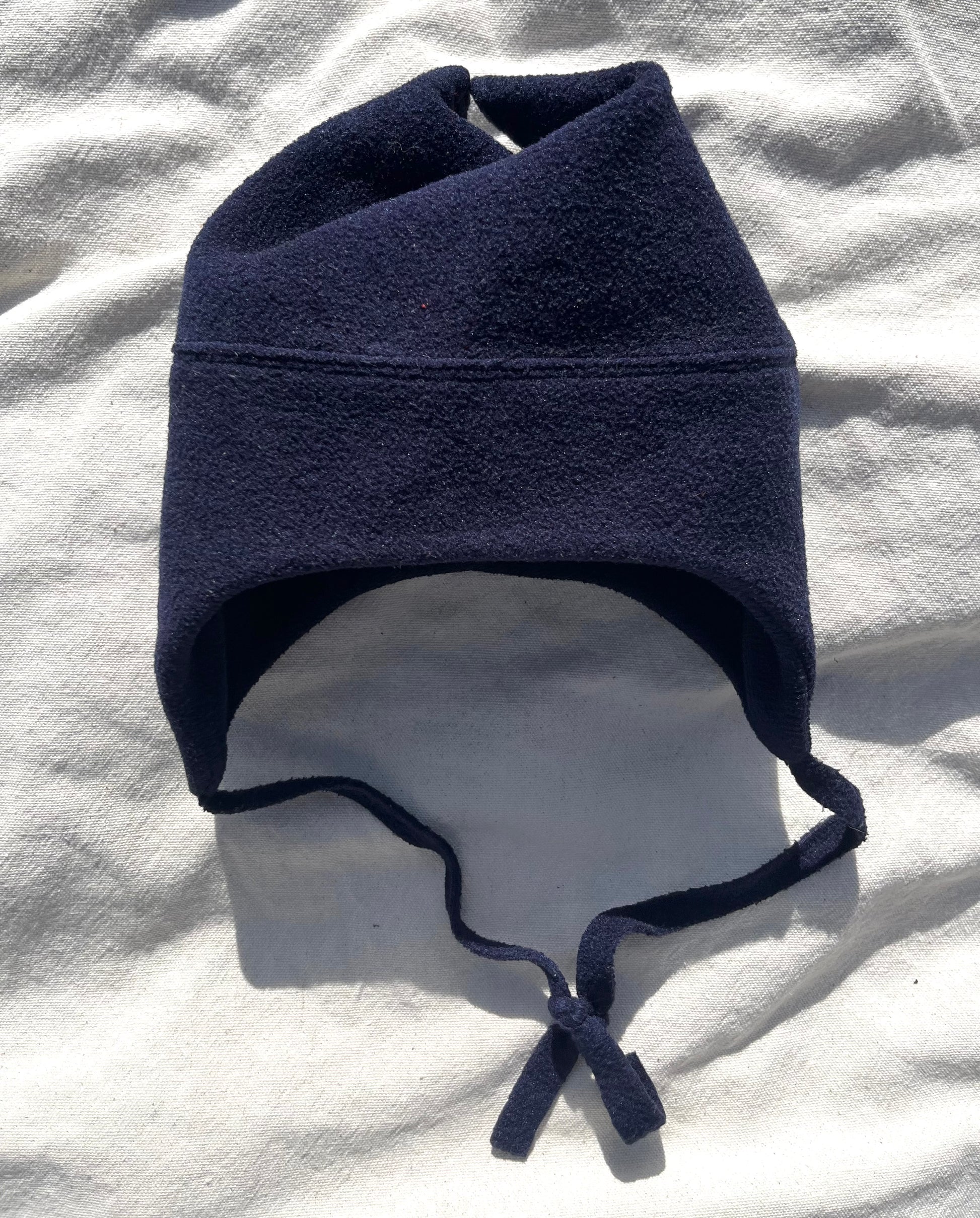90s J.Crew fleece trapper style beanie. Dark navy blue. Heavyweight fleece.