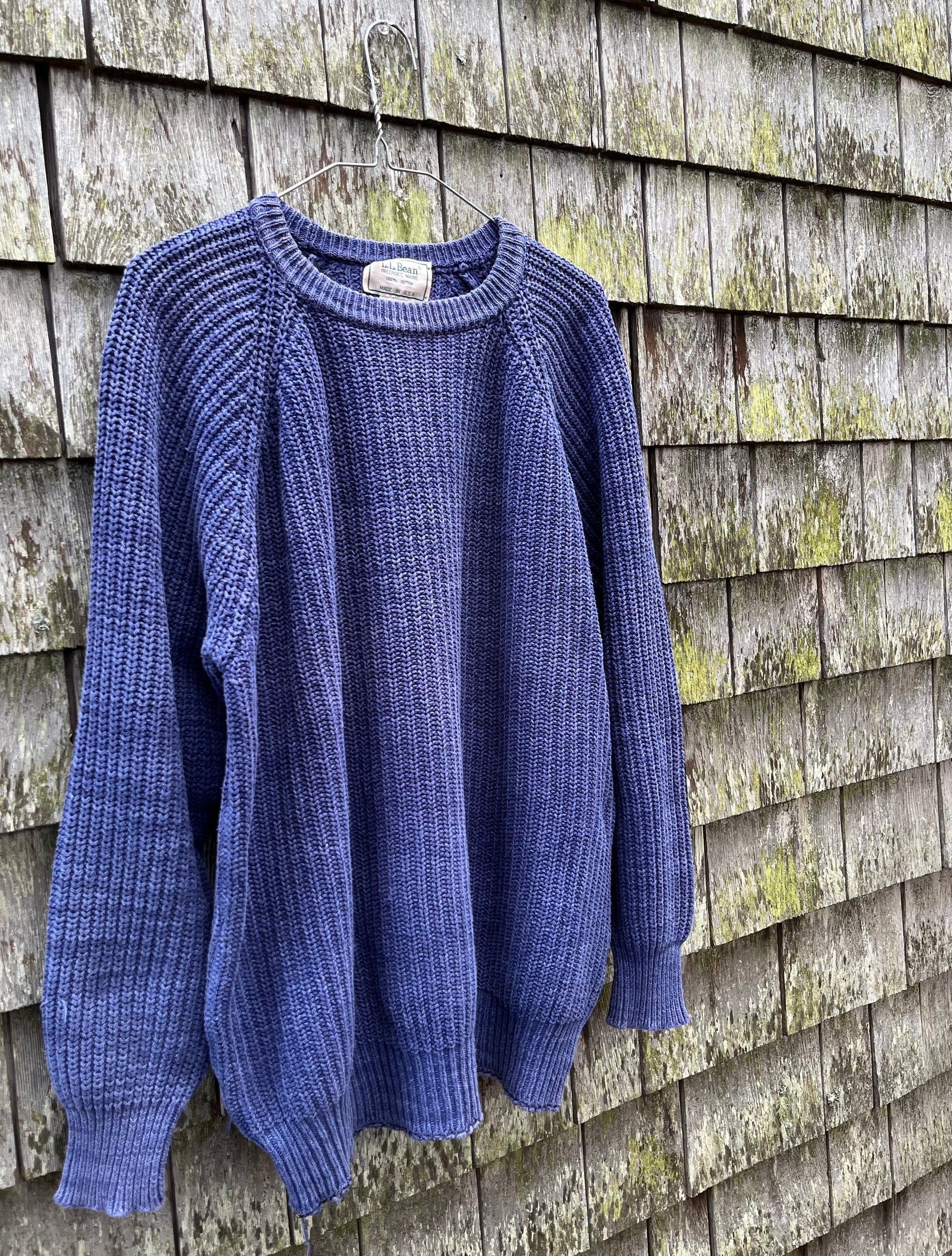 80s/90s L.L. Bean 'Blue Jeans' indigo cotton knit sweater. Marled indigo blue color. 100% cotton. Crewneck. Made in the USA.