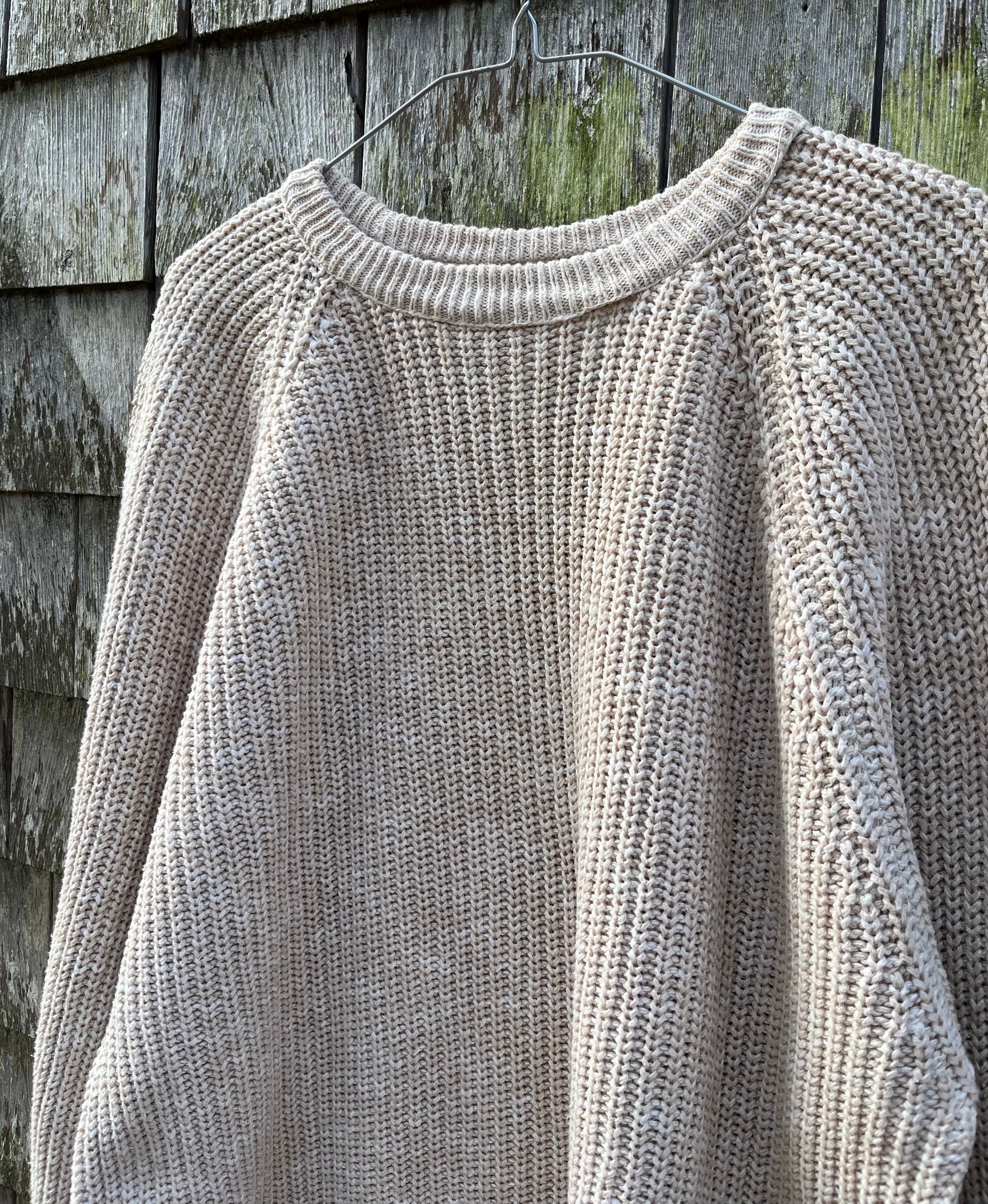 80s/90s L.L. Bean shaker stitch weave cotton sweater. 100% cotton. Flecked beige. Made in the USA.