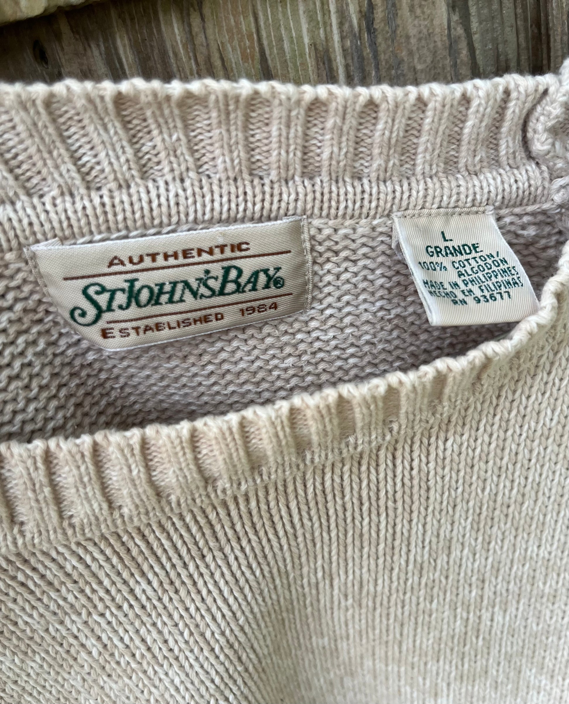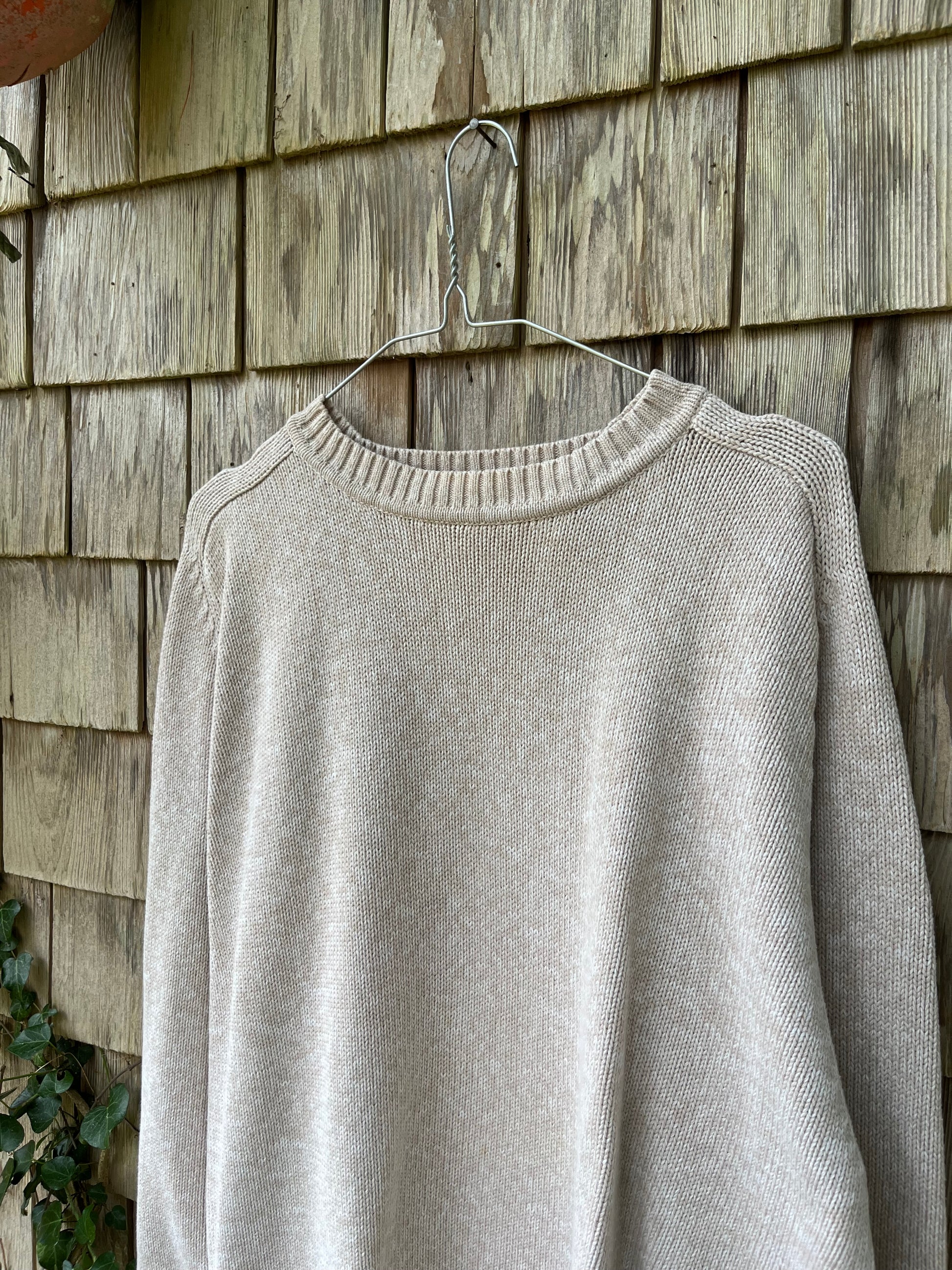 90s St. John's Bay crewneck cotton knit sweater. Light variegated beige color knit. 100% cotton.